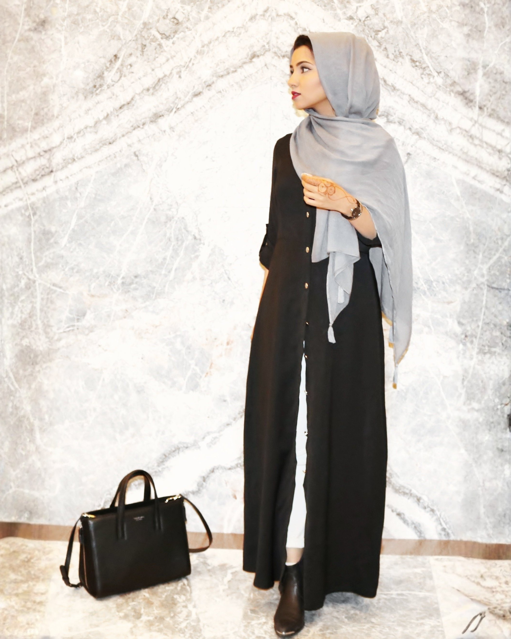 - Full-length abaya with a clean, minimal aesthetic