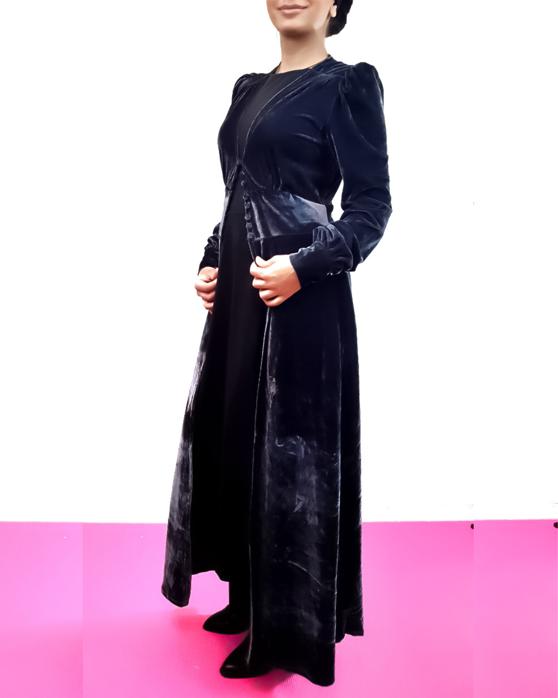 This Charcoal Grey Velvet Abaya is a stunning blend of luxe texture and relaxed elegance, designed to be a versatile standout in your wardrobe. The soft velvet finish creates a subtle sheen that catches the light beautifully, while the longline silhouette offers graceful coverage and effortless layering.